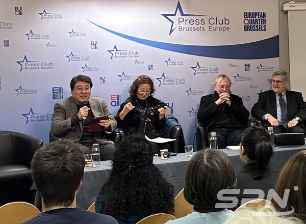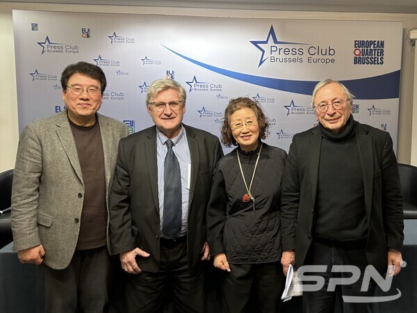 왼쪽부터 도희윤 대표, 빌리 포트레 대표(국경없는 인권협회), 임영희 작가(프랑스어 번역),피에르 리굴로 회장(프랑스 북한주민돕기협회)(사진=도희윤 대표)